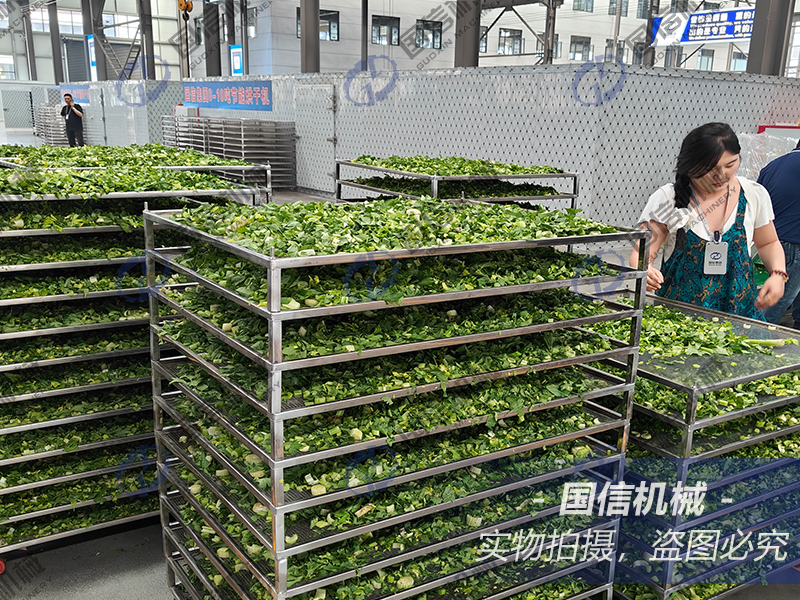 2025年5月16日,客戶帶幾百斤芹菜來(lái)廠試機(jī)烘干,不僅要烘干后的芹菜干,烘干中產(chǎn)生的冷凝水也要打包二次加工再出售,芹菜烘干全程用了十個(gè)小時(shí)左右,成品