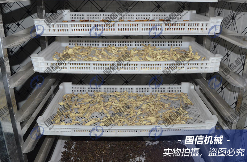生姜烘干機(jī)烘干室內(nèi)烘干,溫度以65-70℃為宜。烘時溫度應(yīng)逐漸上升,免得淀粉糖化、變質(zhì)發(fā)黏。