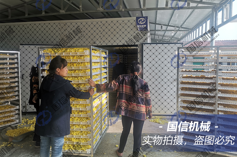 導讀:菊花、金絲皇菊等花類烘干為保證自身的香味、營養成份不被破壞,且方便后期使用和存儲的*佳效果,建議在半開季開始收集采摘,進行烘干作業。