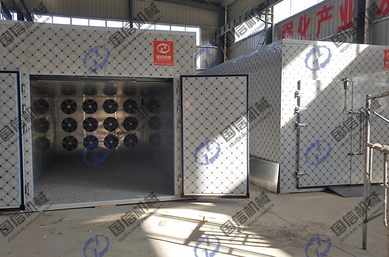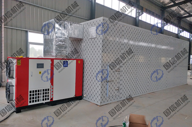 金絲皇菊烘干房采用的是靜態烘干模式,通過熱源裝置,讓烘干房內的溫度升高到制定值,對擺放在房內的菊花進行干制。烘干房的智能化控制系統,可以對溫度和濕度進行精準控制,以達到金絲皇菊烘干的目的。金絲皇菊烘干機是由熱泵主機,保溫板房、交叉換熱器、循環風機、排濕系統、排濕風機、控制系統、推車、托盤等部分組成。