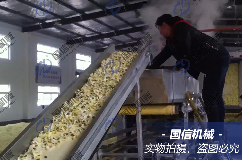 菊花殺青機是菊花烘干的前端處理,可以根據產量大小來進行配套選型。