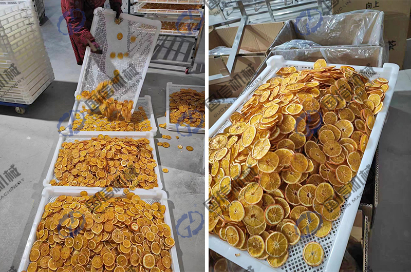 首先把橙子進行清洗切片,均勻的擺放在托盤上,放入烘干房內即可;烘干階段,設定橙子烘干所需的溫度濕度等參數(shù),一般溫度在45-60度之間,時間大約5小時以上,按照你所需要的軟硬程度,設定具體的控制時間即可。使用這種橙子烘干工藝,對橙子進行烘干,可以很好的保證橙子干自身的口感,也解決了橙子產(chǎn)量過剩的問題,有效的增加了橙子自身的經(jīng)濟價值,這也是我們國信機械廠家眾多水果烘干加工的一種,其實我們在為客戶提供烘干設備的同時,也會對物料干制加工進行整體的烘干解決方案提供,通過近二十年的發(fā)展,我們積累了大量的水果烘干加工經(jīng)驗,如果你有相關需求,可與我們聯(lián)系,進行相關的經(jīng)驗交流。