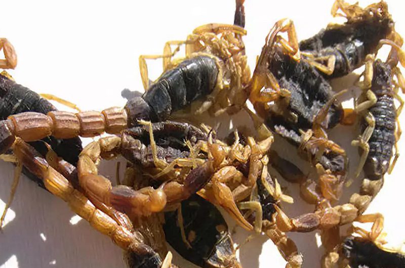 1、首先,蝎子帶回來后,先放置三至五天,在容器里不停爬動,自然消耗體內雜物。