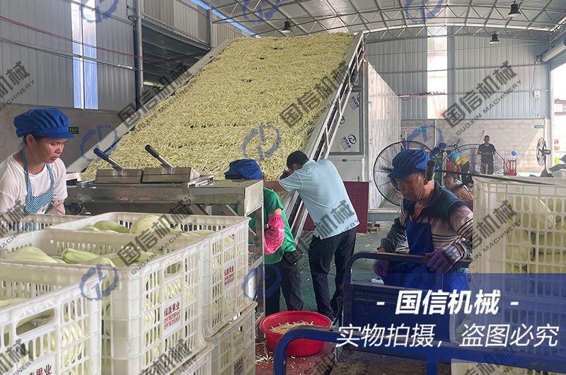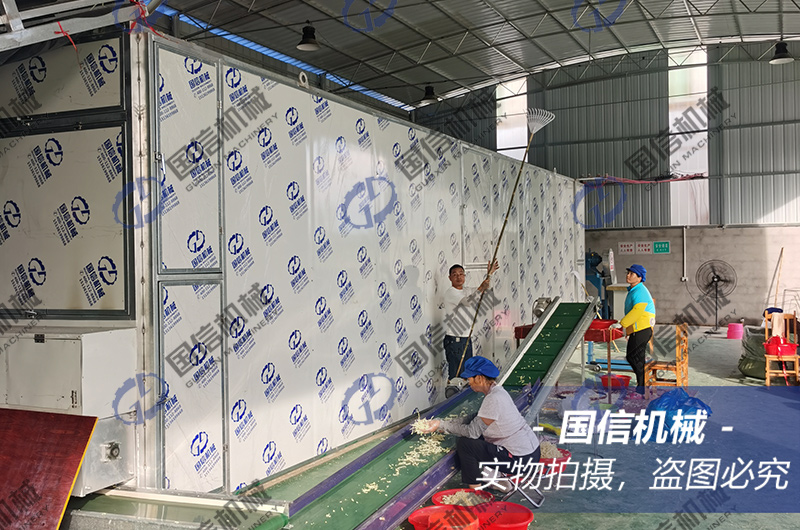 傳統(tǒng)的木瓜絲干制方法采用的是晾曬法,干制效率低,時間長,干制衛(wèi)生條件差,無法滿足市場大規(guī)模需求。隨著網(wǎng)帶式木瓜絲烘干機的推廣和應用,規(guī)模化、集中化干制木瓜絲的方式受到了眾多木瓜種植戶的喜愛,再加上我們網(wǎng)帶烘干機采用的是清潔型能源,不受環(huán)保政策的約束和限制,因此受到越來越多木瓜種植戶或者收購商的喜愛。