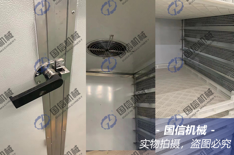 我們的電加熱烘干房材質上是凈化板材,烘房內配耐高溫軸流風機、托盤、電加熱管,電加熱烘干房價格低。這款80盤的電加熱烘干機一次烘干500-800斤,價格在15000元左右,成本方面投資少。